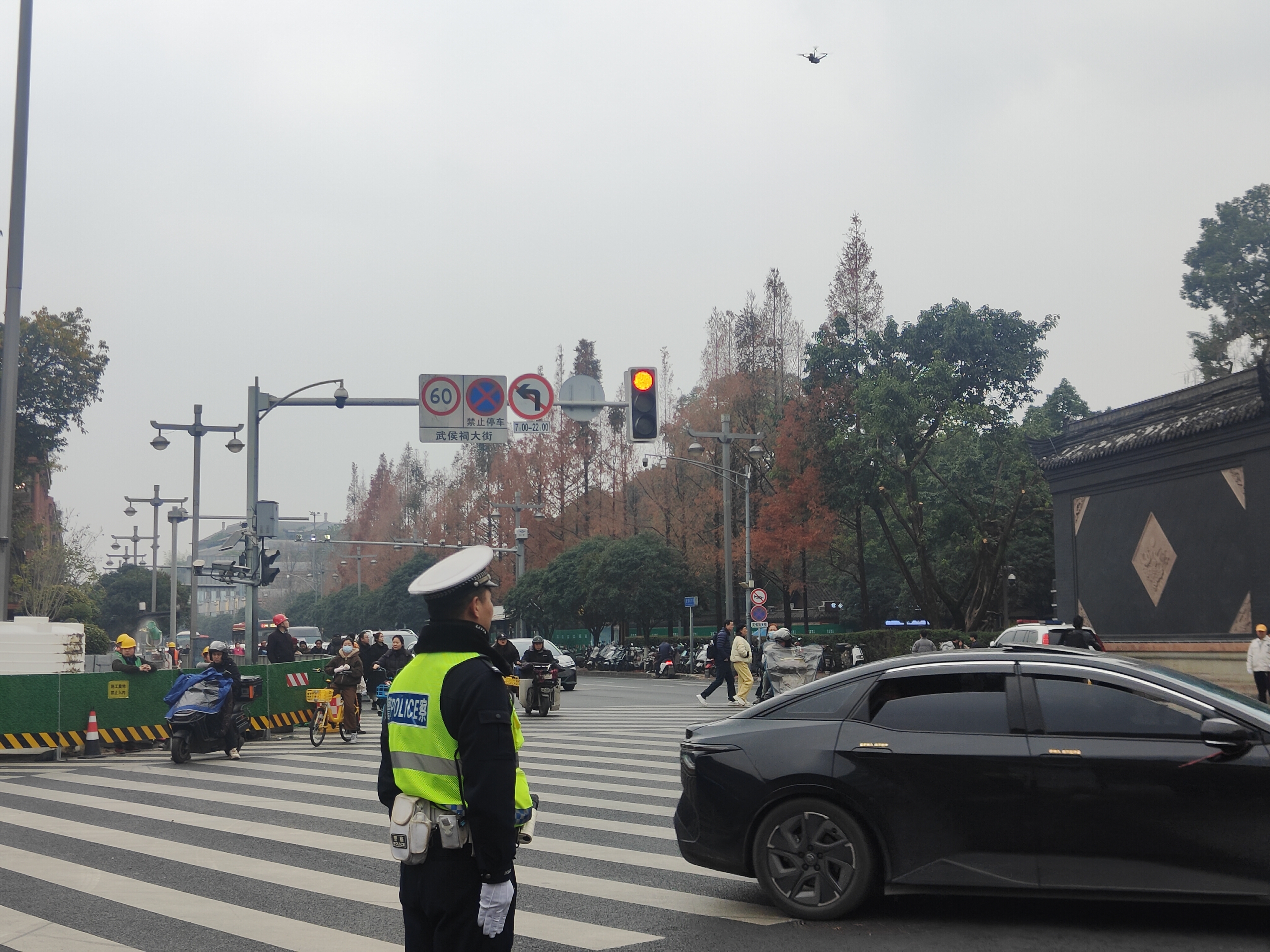 他还说,针对假期武侯祠景区交通情况,交警一分局确定了上午10:00至夜间22:00的重点管理时段,在3条预设航线,无人机以15米的巡航高度,1米每秒的巡航速度,自动执行巡逻管控飞行任务,实现假期高峰交通路况的全时段巡查。同时,警用无人机以武侯祠大街为管控核心,充分发挥无人机机动灵活的优势,将临江路、武侯祠横街、洗面桥横街、高升桥、浆洗街区域全面纳入巡航巡控范围,实现景区及周边4平方公里区域全覆盖。